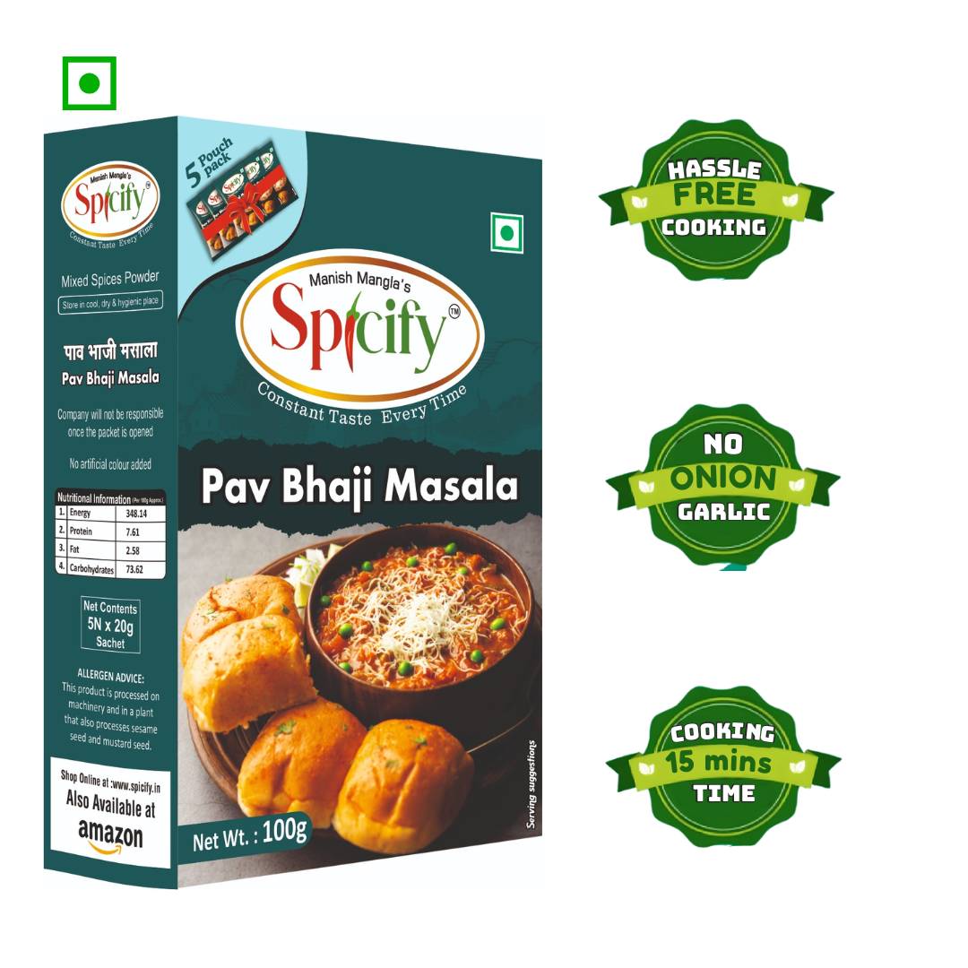 - Add 1–2 teaspoons of Spicify Pav Bhaji Masala and mix thoroughly.